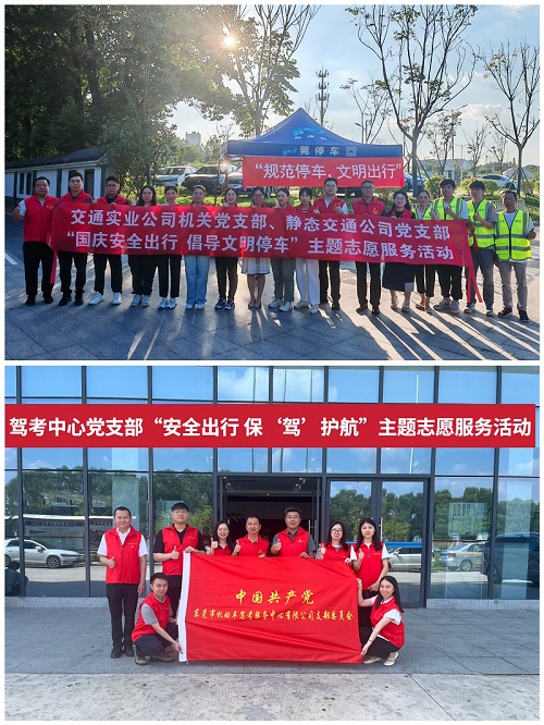在國慶假期到來之際,為做好安全出行保障工作,進一步發(fā)揮黨員先鋒模范作用,9月30日,交通實業(yè)公司各基層黨支部結(jié)合公司業(yè)務(wù)實際,組織約30名黨員職工開展安全出行保障志愿服務(wù)活動。公司機關(guān)支部、靜態(tài)支部組織黨員職工前往東莞中心公園周邊開展“國慶安全出行 倡導(dǎo)文明停車”主題志愿服務(wù)活動,向沿街商戶、停車場車主及來往市民科普停車政策,并在公園顯眼位置設(shè)置宣傳攤位,向市民群眾派發(fā)交通安全宣傳冊及“莞停車”宣傳單張,現(xiàn)場指引車主按泊位規(guī)范停車。駕考支部組織黨員職工在企石深巷考場開展“安全出行 保‘駕’護航”主題志愿服務(wù)活動,志愿者們在考場人流量較大的出入口為考生提供交通疏導(dǎo)服務(wù),在考試樓及考場門口為考生提供考試流程指引,并積極維持現(xiàn)場秩序,努力打造安全通暢的考試環(huán)境。