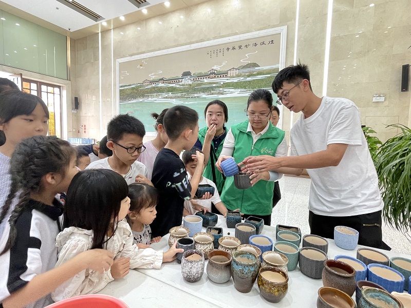 最后在DIY生態(tài)課程中,孩子們和父母一起親手種下多肉盆栽,對精心打造的“作品”愛不釋手,現(xiàn)場洋溢著歡聲笑語。