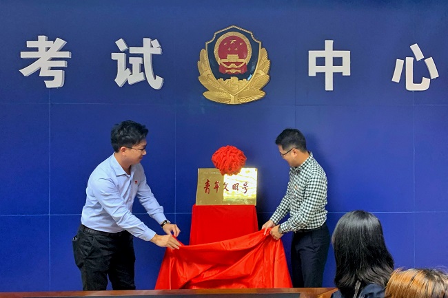 揭牌儀式上,創(chuàng)建小組成員代表首先分享了上橋考場青年文明號創(chuàng)建成果。隨后,袁沛霖書記正式宣讀了《關(guān)于命名2018年度市青年文明號的決定》,并與號長林創(chuàng)業(yè)共同揭牌。
