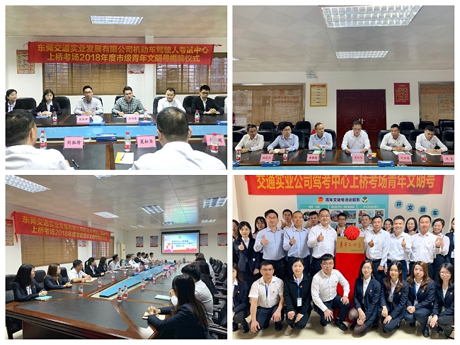 11月28日上午,交通實業(yè)公司駕考中心上橋考場“2018年度東莞市青年文明號”揭牌儀式在上橋考場舉行。東城街道團(tuán)委書記袁沛霖,副書記吳伯珅,交通實業(yè)公司黨總支部副書記、總經(jīng)理莫松堅,黨總支部副書記、監(jiān)事劉拓瑜,駕考中心黨支部書記、總經(jīng)理李敬超,公司團(tuán)支部書記、駕考中心副總經(jīng)理周良,以及創(chuàng)建小組和考場相關(guān)人員參加了儀式。