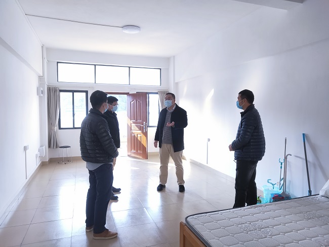 在實地了解了觀察場所的生活及防護用品配備、消毒和管理措施后,有關領導充分肯定了各項籌備工作,并提出以下工作要求:一是加強對集中健康觀察場所的消毒,制定場所進出指引并嚴格落實到位;二是重視防護宣傳教育,提高員工防護意識,嚴格執(zhí)行考場出入體溫檢測;三是提前做好健康觀察場所的網(wǎng)絡、配餐、生活垃圾處理等后勤保障服務方案;四是發(fā)動員工力量完善防疫物資儲備,確保考場衛(wèi)生安全用品配備充足。