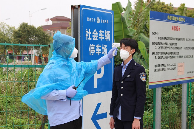 演練充分結(jié)合實(shí)際,模擬考場出現(xiàn)疑似患者后,開展人群疏散、聯(lián)系就診、現(xiàn)場消殺、人員隔離的突發(fā)情況。過程中,工作人員默契配合,規(guī)范處置,取得了預(yù)期效果。通過演練,工作人員積累了應(yīng)對(duì)防控疫情的實(shí)踐經(jīng)驗(yàn),增強(qiáng)了防控的信心和決心。