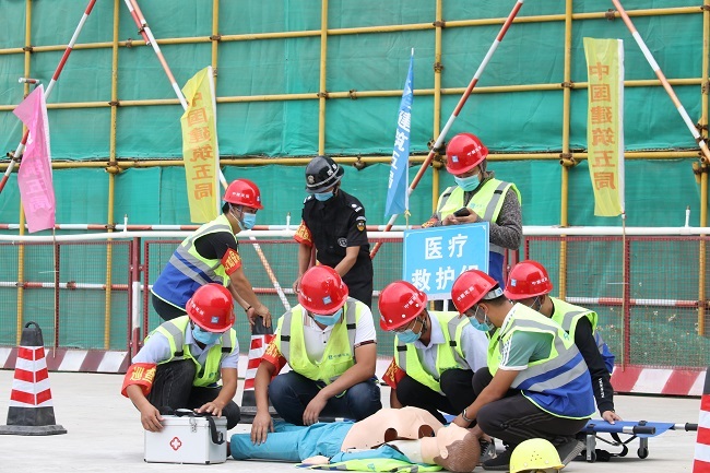 演練由李敬超副總經(jīng)理?yè)?dān)任總指揮,模擬施工現(xiàn)場(chǎng)有工人從高處墜落,各級(jí)單位立即啟動(dòng)應(yīng)急響應(yīng),開(kāi)展現(xiàn)場(chǎng)救援和信息報(bào)送等工作。整個(gè)演練分工明確、配合緊密、銜接順暢,達(dá)到了檢驗(yàn)公司應(yīng)急預(yù)案的科學(xué)性、實(shí)用性和可操作性的預(yù)期目的。