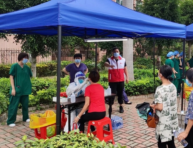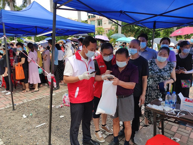 疫情就是命令,防控就是責(zé)任。6月20日深夜,集團(tuán)公司黨委積極響應(yīng)市委組織部《關(guān)于支援我市疫情防控一線的倡議書》,連夜組織一支由集團(tuán)班子領(lǐng)導(dǎo)成員帶隊(duì)的志愿者隊(duì)伍。交通實(shí)業(yè)公司積極響應(yīng)號召,在兩小時(shí)內(nèi)完成人員發(fā)動(dòng)、報(bào)名、建群等組織工作,迅速組建了抗擊疫情志愿服務(wù)隊(duì)。6月21日上午7時(shí),交通實(shí)業(yè)公司黨總支部委員、副總經(jīng)理李敬超帶領(lǐng)服務(wù)隊(duì)整裝出發(fā)前往樟木頭鎮(zhèn)柏地社區(qū)。在檢測現(xiàn)場,服務(wù)隊(duì)積極配合醫(yī)護(hù)人員秉持“應(yīng)檢盡檢、不漏一戶、不落一人”原則,協(xié)助開展秩序維持、體溫檢測、掃碼進(jìn)場、后勤保障等各項(xiàng)工作,特別是對獨(dú)自前往檢測的老人細(xì)心照料,手把手指引他們排隊(duì)掃碼、填報(bào)信息、接受檢測,為市民提供貼心的服務(wù)。
