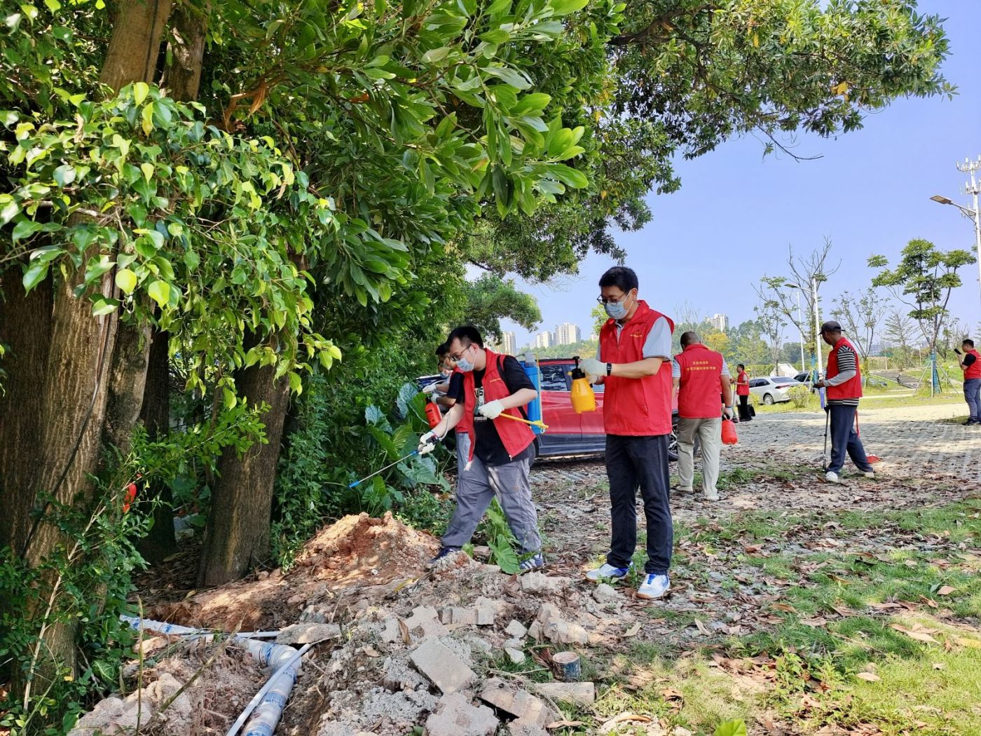 公司機關(guān)支部組織黨員職工在交通實業(yè)公司辦公大樓、寮步橫坑便民停車場開展蚊媒傳染病防控志愿服務(wù)活動,現(xiàn)場重點聚焦房前屋后、草叢、下水道溝渠等高風(fēng)險區(qū)域,對清理區(qū)域進行全方位藥物噴灑,全面消滅易孳生蚊蟲的衛(wèi)生死角,并通過在辦公區(qū)域、飯?zhí)?、停車場出入口張貼海報等方式,向市民及員工普及蚊媒傳染病知識,以實際行動筑牢聯(lián)防聯(lián)控的嚴密防線。
