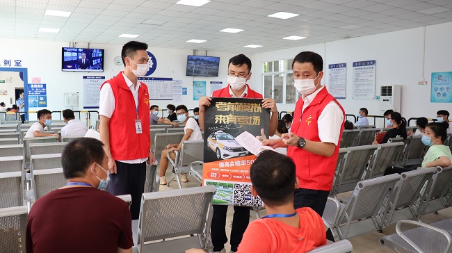 7月20日至24日期間,交通實(shí)業(yè)公司以黨建帶團(tuán)建,組織60余人次的黨團(tuán)志愿者分別在駕考中心余屋考場(chǎng)、水濂考場(chǎng)、企石考場(chǎng)、橫瀝考場(chǎng)開展“標(biāo)桿新駕考、勇?lián)率姑薄煌▽?shí)業(yè)公司黨團(tuán)青年志愿服務(wù)活動(dòng)。活動(dòng)現(xiàn)場(chǎng),志愿者們向堅(jiān)守在駕考一線崗位的社會(huì)輔助考試員派發(fā)消暑糖水,表達(dá)關(guān)愛之情,并在余屋考場(chǎng)、橫瀝考場(chǎng)向參加科目二場(chǎng)地技能考試的考生推廣駕考中心“駕考莞家”公眾號(hào)及考前模擬真考場(chǎng)適應(yīng)性訓(xùn)練服務(wù)。