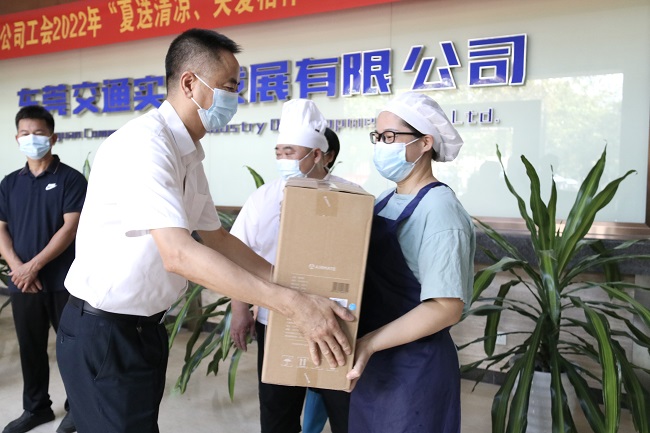 為關(guān)注一線員工健康和安全,8月1—2日,交通實(shí)業(yè)公司及駕考中心工會(huì)以“夏送清涼 關(guān)愛(ài)相伴”為主題,開(kāi)展夏季送清涼及防暑降溫慰問(wèn)活動(dòng)。活動(dòng)現(xiàn)場(chǎng),公司兩級(jí)工會(huì)都對(duì)奮戰(zhàn)在一線的員工致以親切慰問(wèn),感謝他們辛勤付出,叮囑他們做好高溫防護(hù)、合理安排作息,還為他們送上風(fēng)扇等慰問(wèn)品,努力營(yíng)造良好的工作氣氛,提高員工幸福感。