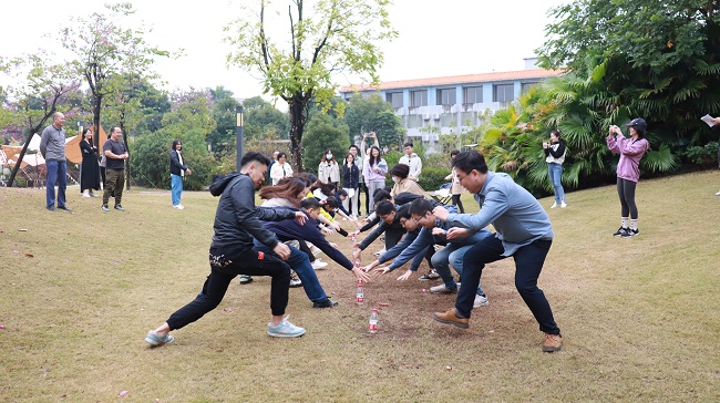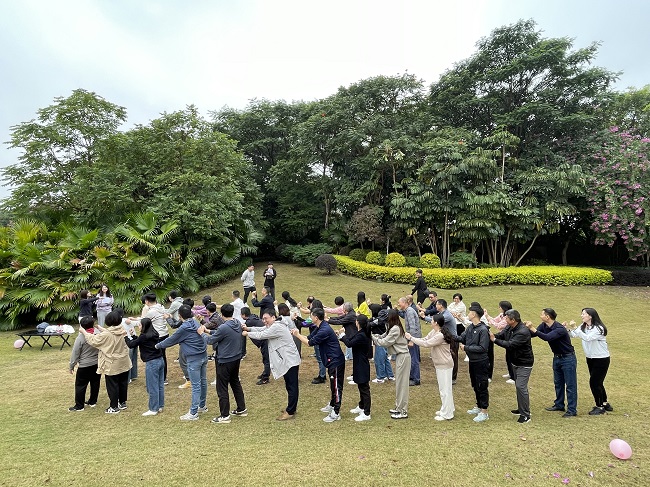 到達(dá)燕嶺濕地公園后,會員們沿著蜿蜒的水系漫步閑聊,不時用鏡頭記錄美好瞬間,感受青山綠水帶來的愉悅;隨后到燕嶺園營地開展團(tuán)建活動,通過熱身操、按摩操等互動,迅速點燃現(xiàn)場氣氛,并開展了“請你不要到處摸摸”“蒙眼取水”“交叉接飛盤”等團(tuán)隊游戲。在游戲過程中,各組隊員相互鼓勁、配合默契,場外觀眾吶喊助威,掌聲和歡呼聲此起彼伏,現(xiàn)場洋溢著熱情和活力,有效增進(jìn)了相互之間的友誼和交流,受到了會員們的一致好評。