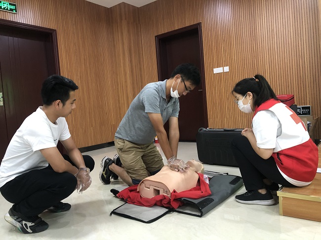 為切實提高員工的防災(zāi)避險意識和處置突發(fā)意外的能力,駕考中心近期將組織60名員工分兩期開展紅十字會救護員培訓活動。7月16—17日,第一期培訓活動在周屋理論考場舉辦,共有30名員工參加。本次培訓分為理論知識講解和實踐操作兩部分,由導師向?qū)W員講解應(yīng)急救護常見的施救技巧,并指導學員進行常用應(yīng)急處置方法現(xiàn)場實踐。通過培訓,第一期參訓人員全部通過理論及心肺復蘇實操考試,順利取得救護員資格證。下來,駕考中心將抓緊完成第二期培訓活動,為突發(fā)事件應(yīng)急保障做好人才儲備。
