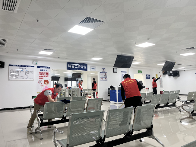 為強(qiáng)化黨建引領(lǐng),發(fā)揮黨員先鋒模范作用,12月6日下午,駕考中心黨支部組織16名志愿者在企石深巷考場開展“我為群眾辦實事”清理考場志愿服務(wù)活動,期間對科目二考試休息區(qū)的地板、桌椅、設(shè)備等進(jìn)行擦拭及清潔,清洗場外地面標(biāo)識線,維護(hù)考場環(huán)境衛(wèi)生干凈整潔,進(jìn)一步提升考生考試體驗。