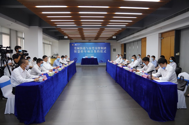 3月27日上午,東莞交投集團與莞城街道智慧停車項目簽約儀式成功舉行,市交通運輸局副局長喻清明,莞城街道黨委書記曲洪淇,黨委副書記、辦事處主任麥允謙,人大工委主任張建均,市交投集團黨委書記、董事長羅沛強,黨委副書記、總經(jīng)理張慶文,黨委委員、副總經(jīng)理李斌峰出席儀式。