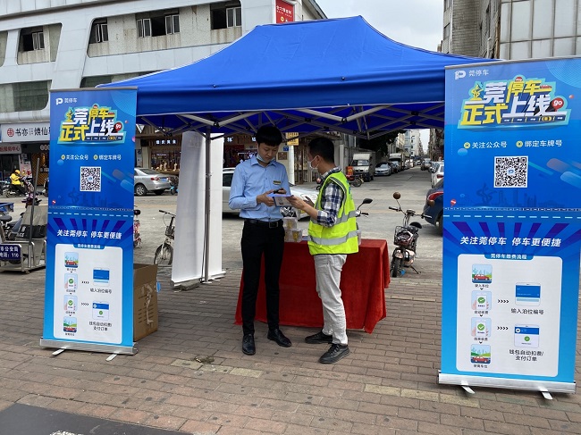 企石鎮(zhèn)智慧停車試點項目于3月1日正式上線運營。為進(jìn)一步加深市民對智慧停車的了解,提高試點運營路段停車泊位的周轉(zhuǎn)率,3月11日下午,靜態(tài)交通公司聯(lián)合企石鎮(zhèn)公用事業(yè)服務(wù)中心在寶石商業(yè)廣場開展“印象企石 智慧同行”智慧停車宣傳活動。