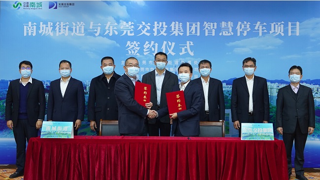1月14日下午,南城街道與東莞交投集團在南城街道宏圖科技中心順利舉行智慧停車項目簽約儀式,市交通運輸局局長祁志強、副局長劉賀賢,南城街道黨工委書記朱利民,黨工委副書記、辦事處主任韓暖渠,東莞交投集團黨委書記、董事長,市軌道公司黨委書記羅沛強,東莞交投集團黨委副書記、紀委書記黃沛林,黨委委員、副總經(jīng)理李斌峰出席見證,南城實業(yè)集團總經(jīng)理李富恩與靜態(tài)交通公司執(zhí)行董事曾小波簽署合作協(xié)議。